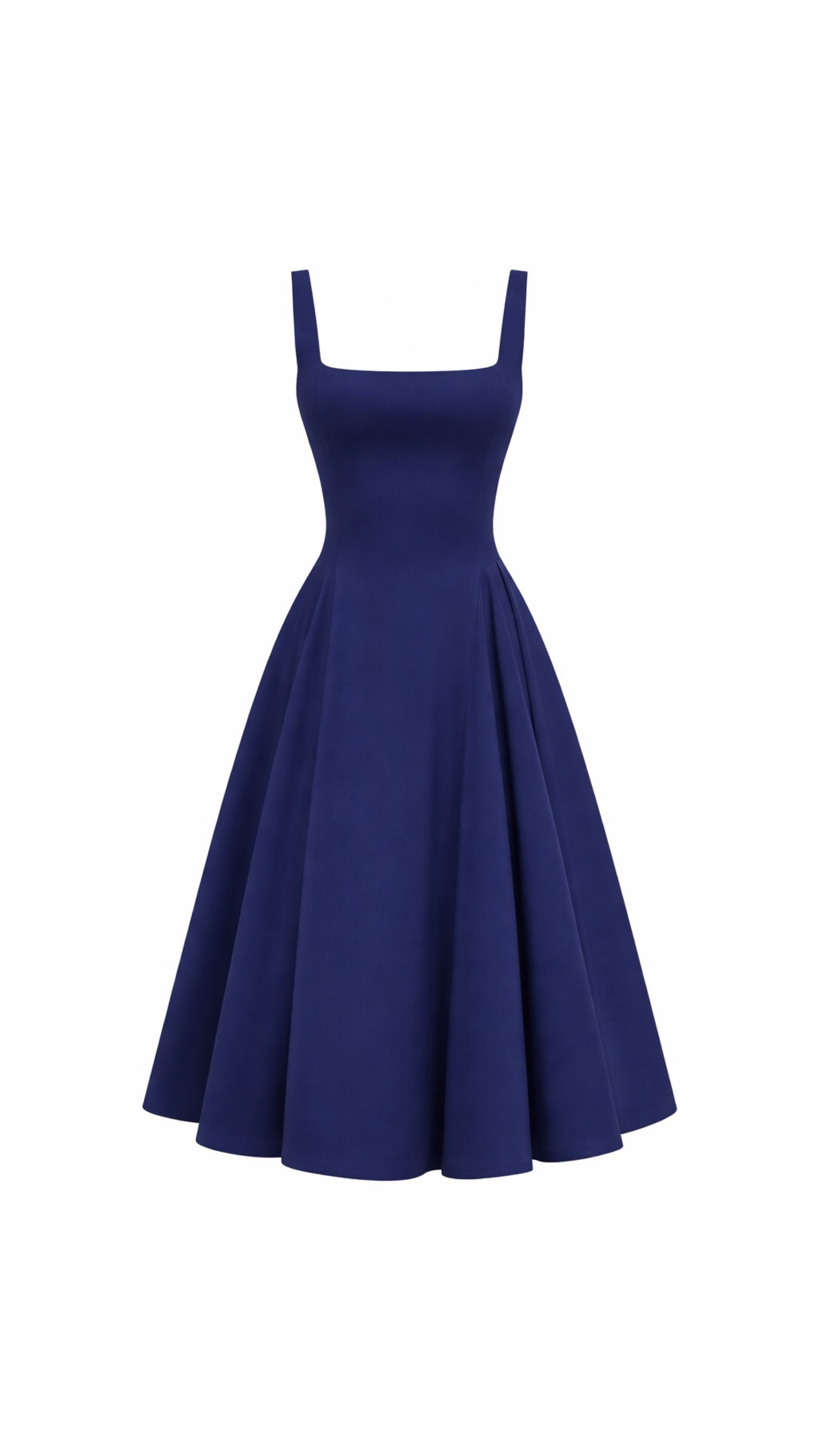 Classic elegance meets modern femininity in the Evelyn Midi Dress. Designed with a structured bodice and a flattering square neckline, this timeless silhouette accentuates the waist before flowing into a beautifully full midi skirt. The rich blue tone adds a sophisticated touch, making it perfect for special occasions, weddings, dinners, or any moment you want to feel effortlessly polished.